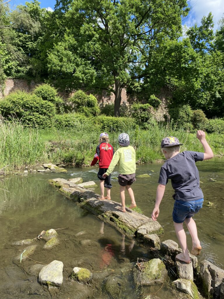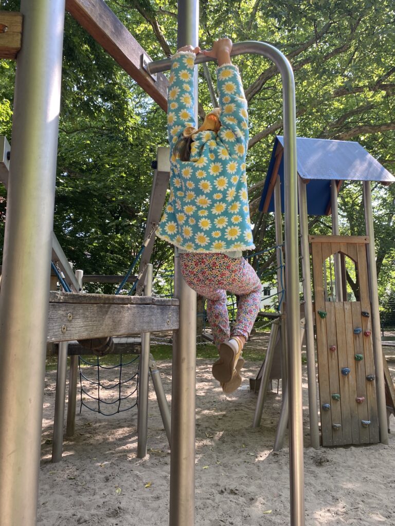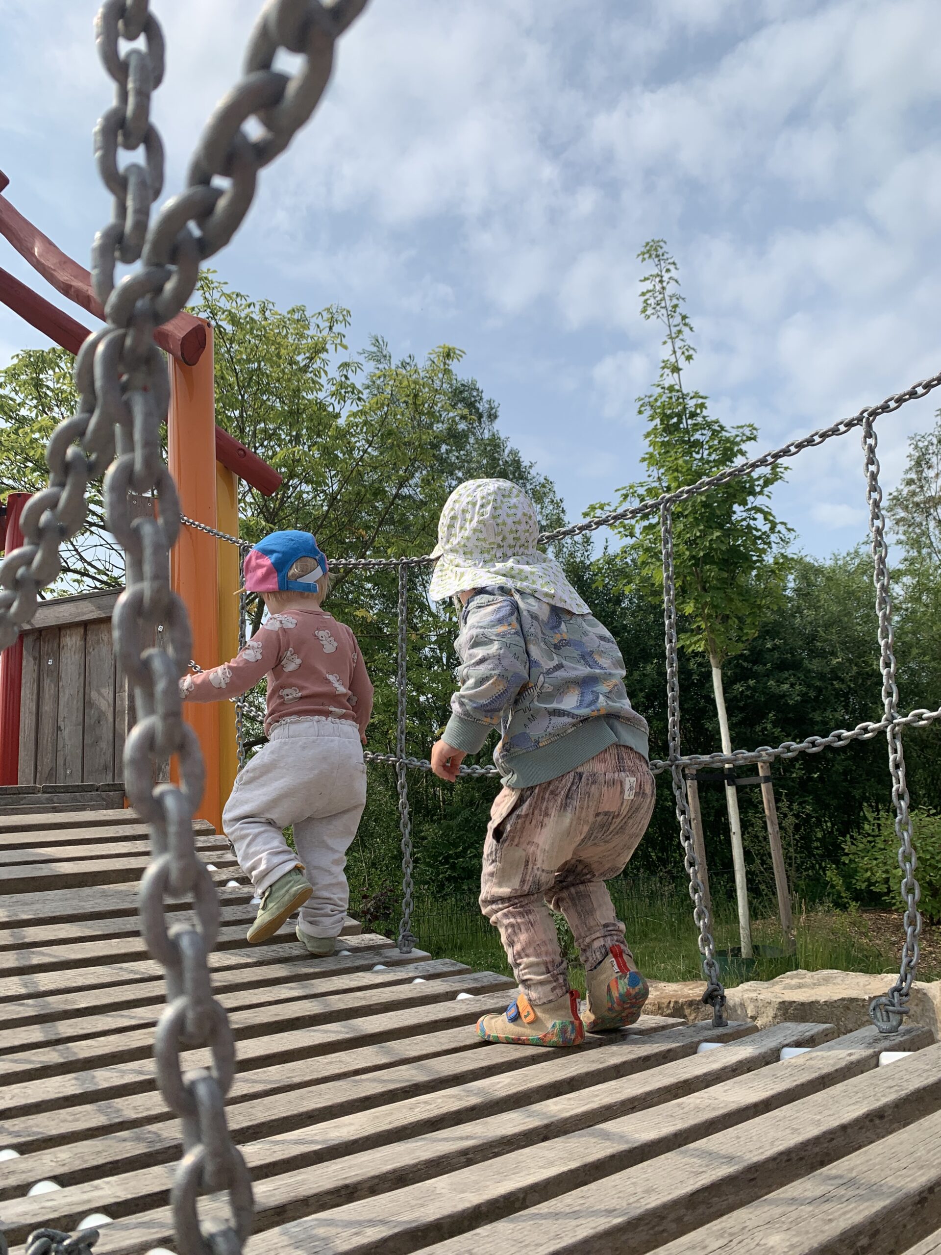 Klettern, Laufen, Springen, Balancieren, Schaukeln und taktiles Empfinden üben die Kinder in den Gruppenräumen, in unserem Bewegungsraum, im Garten und auf Fahrzeugen auf dem Außengelände. Diese Kompetenzen werden durch Ausflüge (Wald, Spielplätze, Museen usw.) erweitert.
