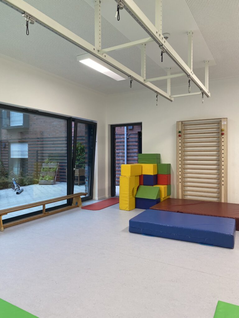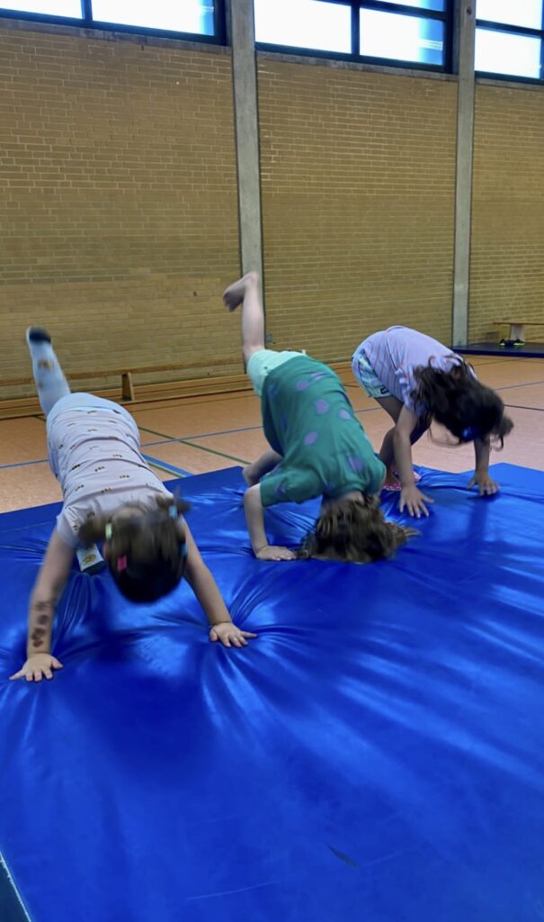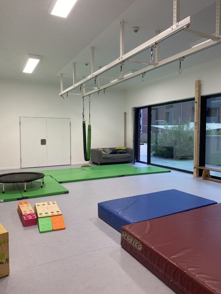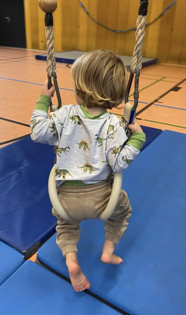 Einmal pro Woche nutzen die über dreijährigen Kinder die Turnhalle einer nahegelegenen Grundschule.